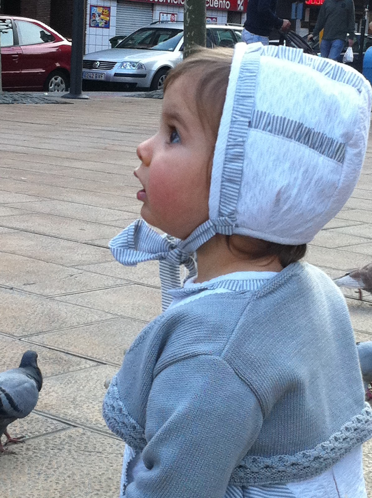 Me gusta mucho la carita de sorpresa y descubrimiento que tiene mirando a las palomas.