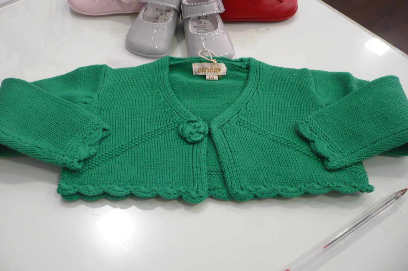 Chaqueta verde, igual Carmen Taberner tiene y si no se lo dices al Ratoncito Perez o La Cigüeña Pedigueña y te las hacen con los tonos que quieras.